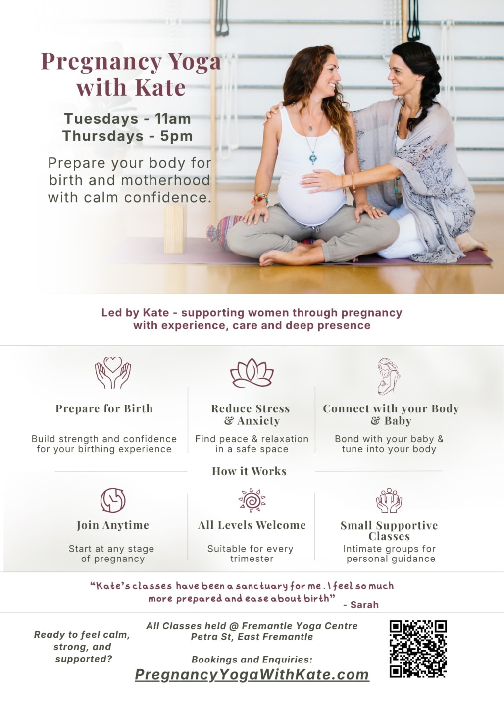 The studio is booked for pregnancy yoga and you can purchase tickets through the teacher's own private business: